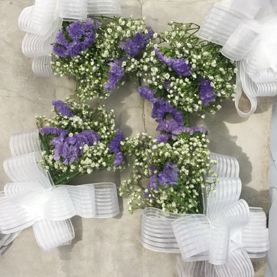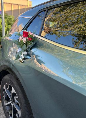 El arreglo de puertas de coche de novios es el detalle perfecto para adornar el vehículo en el día más especial de sus vidas. Este adorno está elaborado con flores que complementan el ramo de la novia, asegurando una armonía en toda la decoración.