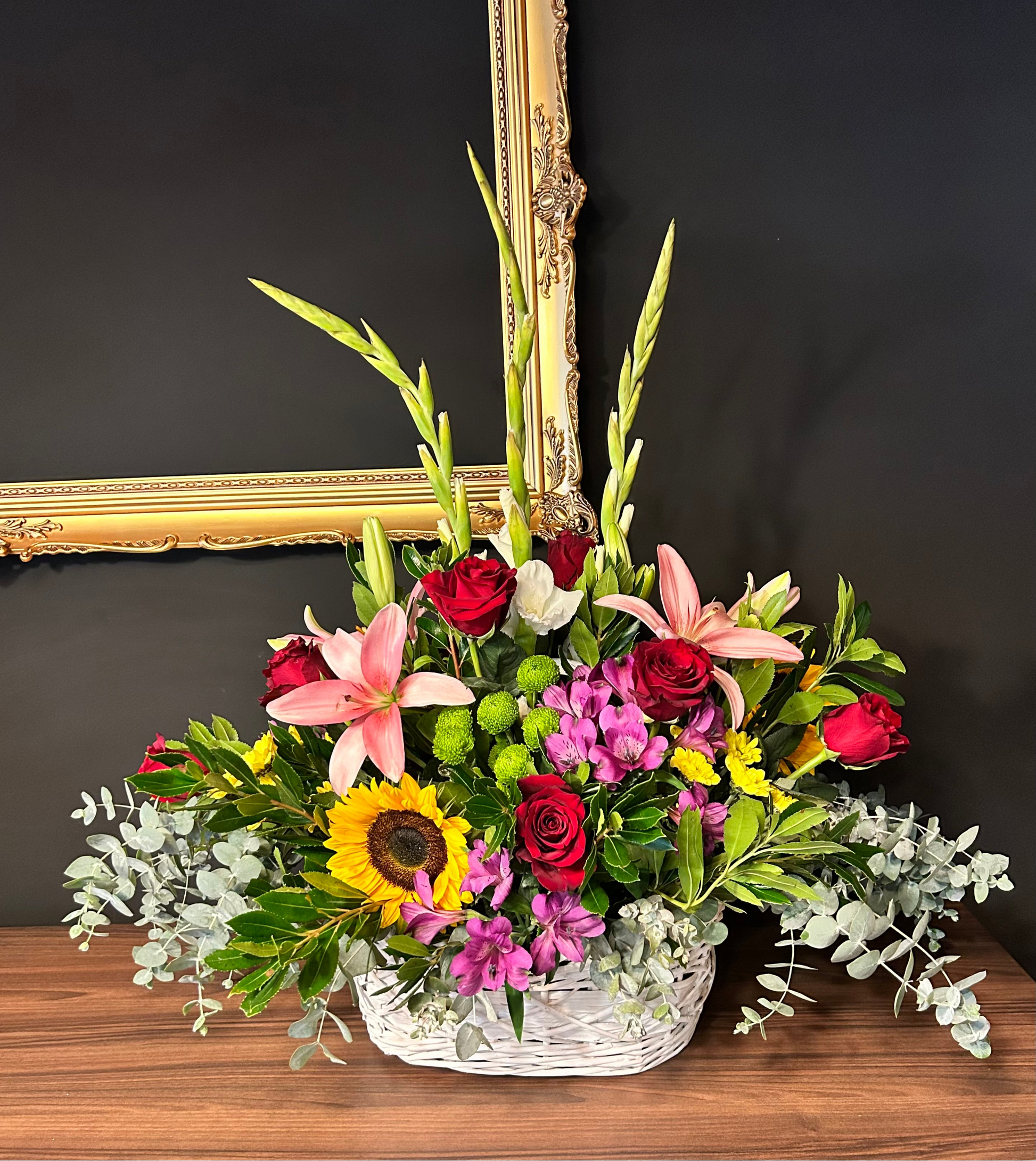 La Cesta de Flores Elegance es el regalo perfecto para sorprender a esa persona especial. Compuesta por una variedad de flores de temporada, esta cesta es ideal para transmitir tus sentimientos más sinceros. Los arreglos florales son trabajados por floristas expertos, garantizando la calidad y frescura de las flores y verdes utilizados.