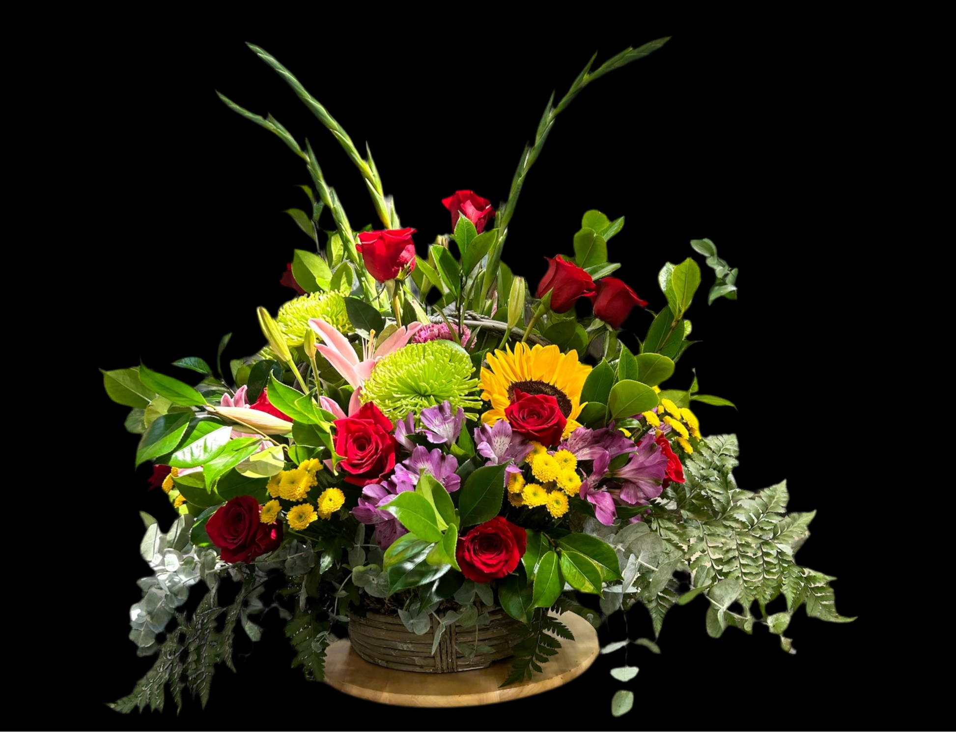 Sorprende a tus seres queridos con esta elegante y hermosa Cesta de Flores Elegance. ¡Haz tu pedido ahora y regala un detalle IMPRESIONANTE!