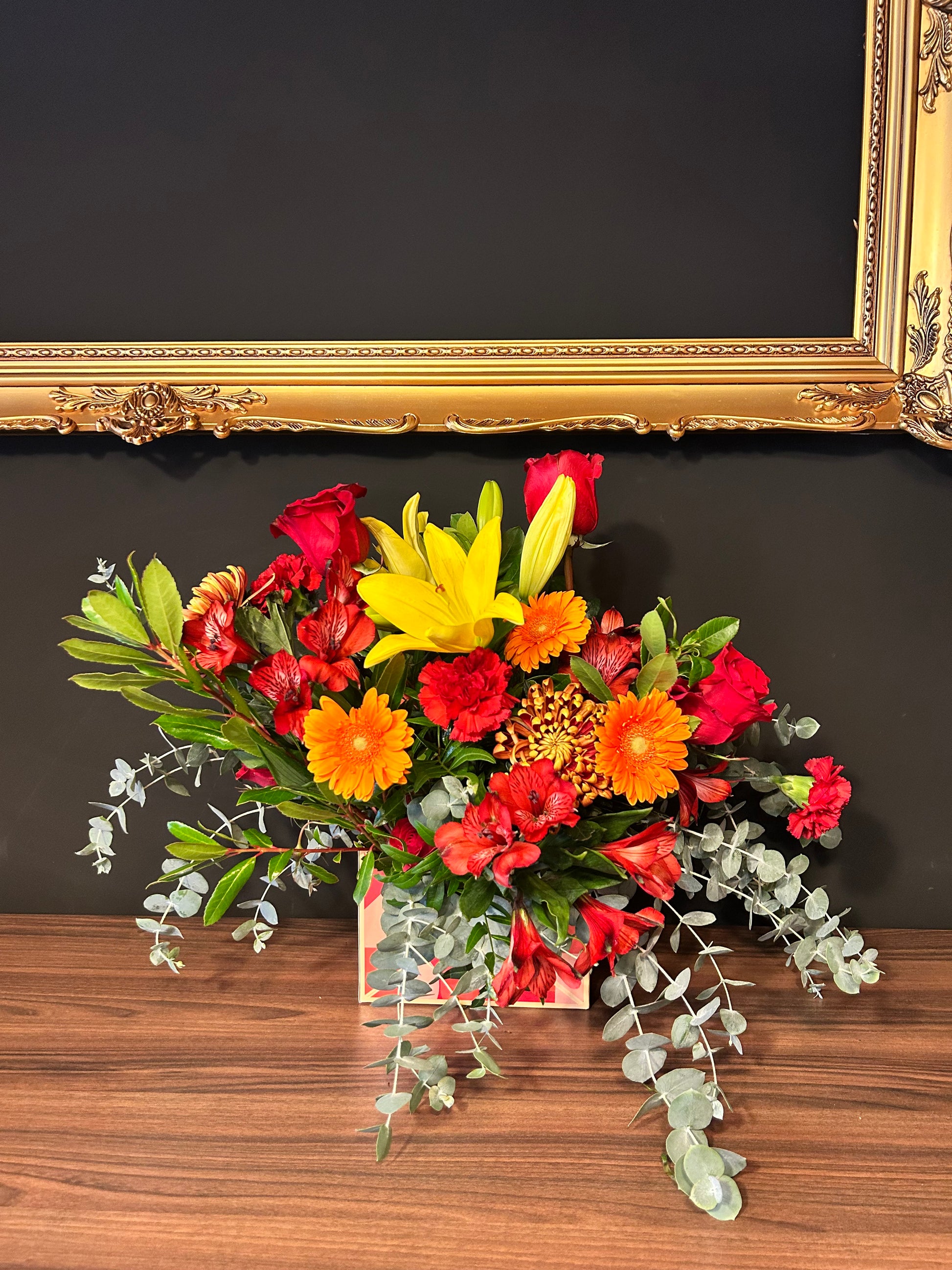 Lucia es un ramo inspirado en nuestra Cliente CARTERA. Siempre que nos visita o tiene que hacer un regalo, lleva esta composición de flores realizada en una base con forma de sobre de carta ¿por qué será?