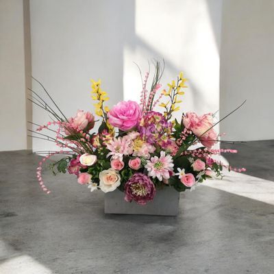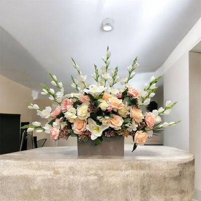 La jardinera para pie Panteón es un hermoso arreglo floral elaborado con flores artificiales de alta calidad que imitan perfectamente a una flor natural. Estas flores están compuestas por telas tintadas y tratadas para exterior, plásticos inyectados, látex o siliconas que aportan textura natural a las composiciones.