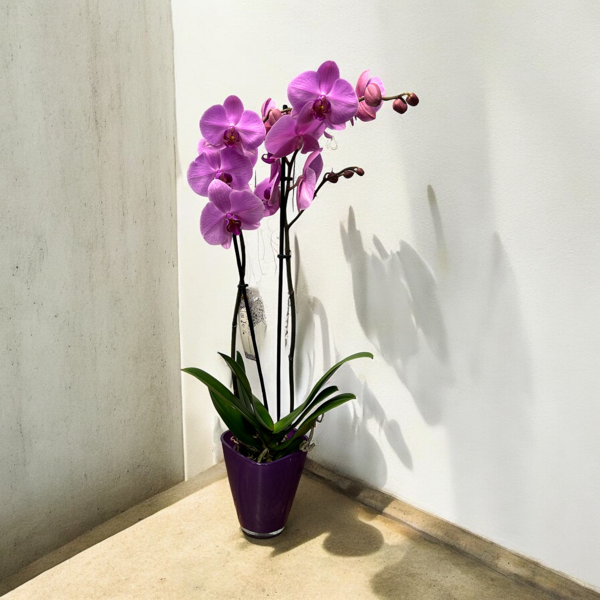 La Phalaenopsis Colorida de 2 Tallos es una planta de orquídea elegante y colorida, perfecta para regalar en cualquier ocasión. Con una floración que puede durar entre ocho y doce semanas, estas orquídeas añaden un toque hermoso y duradero a cualquier hogar.